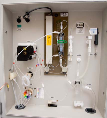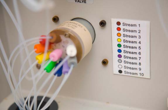 The analyser system comes as standard with a 10 port stream selector allowing both standards (for calibration and checks) and samples to be automatically sequenced. |