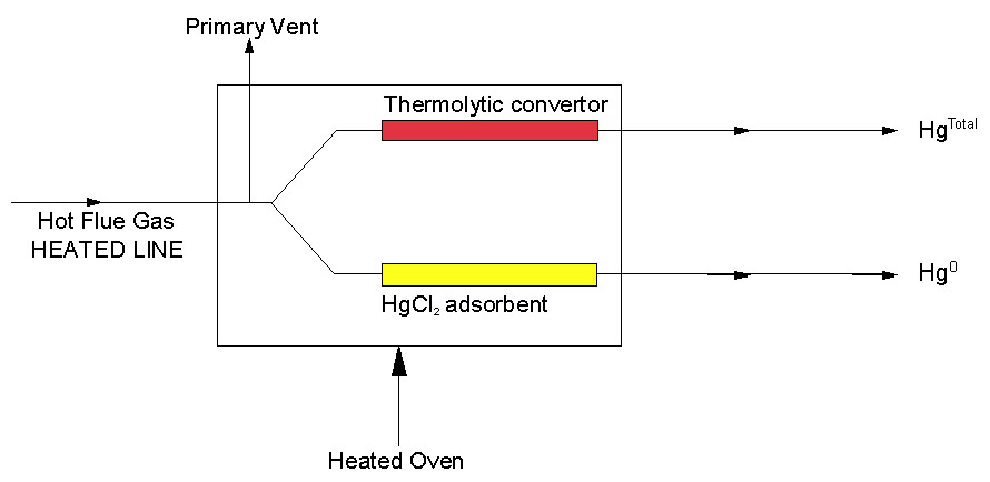 The unit operates by drawing the hot gas through a filter to the dilution cross. Dilution gas is used to feed the eductor pump of the dilution cross which pulls the converted sample through an orifice at sonic conditions. The usual dilution rate is 40:1, other options are also available. The diluted sample is split between a sample bypass where the gases are vented, the catalyst tube and the adsorption tube. The streams from the catalyst tube and adsorption tube are transferred to the analyser where the mercury in each is measured sequentially. The dilution rate can be verified using PSA mercury generators. This arrangement prolongs the catalyst and adsorbent life. The use of the dilution overcomes condensation of acid gases and water which removes the need for expensive heated sample lines. It is particularly useful when analysing streams with very high concentrations of mercury. |