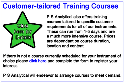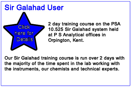 Throughout the year P S Analytical runs various standard training courses for users of our systems. For more details on the courses we run, please click on the relevant star below. For prices, please contact Gillian Simons and she will be happy to give you any information you require. Our standard courses available are: Millennium Systems Training Course and Sir Galahad Training Course, we also provide Customer-tailored Training Courses, you will need to speak to Gillian Simons in order to arrange a specific required course. |